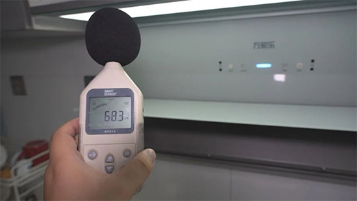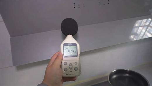 油煙機的風量是越大越好,風量越大往往也會產(chǎn)生較高的噪音。W8超薄低吸油煙機內(nèi)置降噪設(shè)計,最小噪音官方數(shù)據(jù)為49分貝,經(jīng)實測僅為47.9分貝。