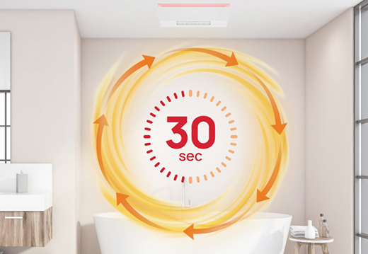 雙電機設置,換氣、吹風、取暖可同時進行,可實現有效干衣、干發、干身,一機多用,舒適享受。