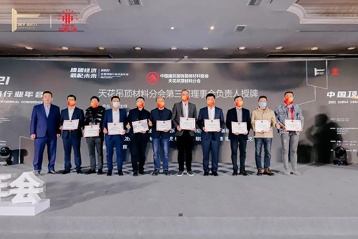 ▲天花吊頂材料分會第三節理事會負責人授牌合影