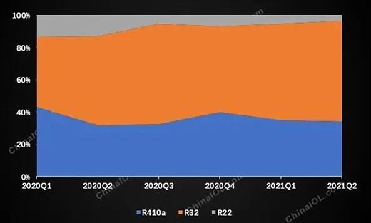 2020-2021年家用空調細分冷媒產品結構(按銷量)