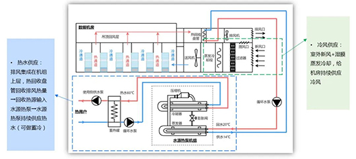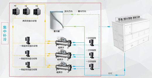集中式補冷為間接蒸發冷AHU+磁懸浮離心機水系統相結合的聯合供冷模式,充分利用不同機組的優勢互補,從而實現數據中心最優的PUE解決方案。