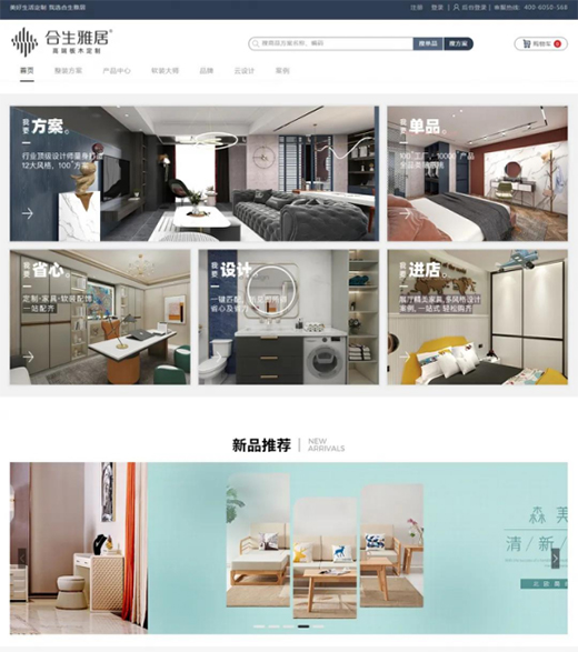 合生雅居全屋優品總共分為七大板塊區,首頁展示、整裝方案提供、產品中心、軟裝搭配、合作品牌、云設計、案例分享,其中整裝方案提供不僅解決客戶裝修搭配難題也為經銷商提高了客單值,云設計更是平臺一大亮點,提高設計效率的同時,讓客戶輕松比對不同的設計方案,大大提高客戶滿意度。