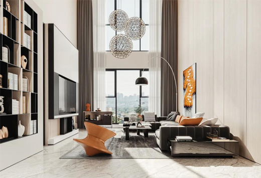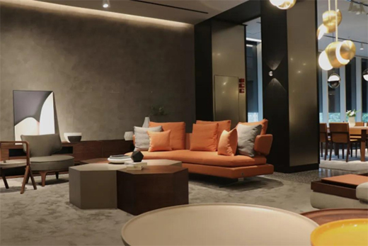 橙色與深木色的巧妙搭配,橙色給厚重的深木色增添了幾分暖意和溫潤。在相互的映襯下,將深木色的木紋和橙的皮紋紋理質感展現的淋漓盡致,伸手觸摸更能感受到其中的精致,自然而獨特,理性且感性,游走在高冷和時尚之間,彰顯優雅和輕奢的韻味。