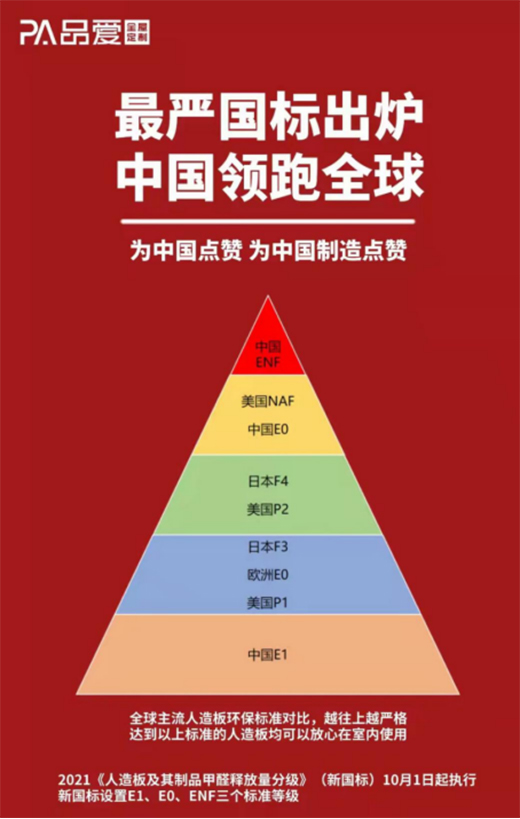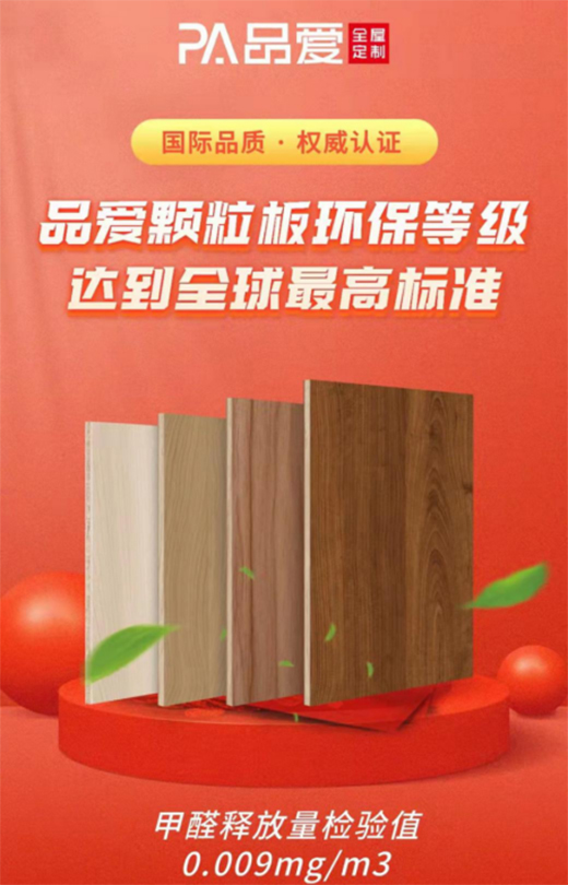 在新國標出來之前,我國人造板環保等級最高為E1級,而品愛全屋定制所使用的板材,早已領先國家標準,其自主生產的實木顆粒板、多層實木板、愛心板實木顆粒板等板材,甚至已經達到新國標ENF級。