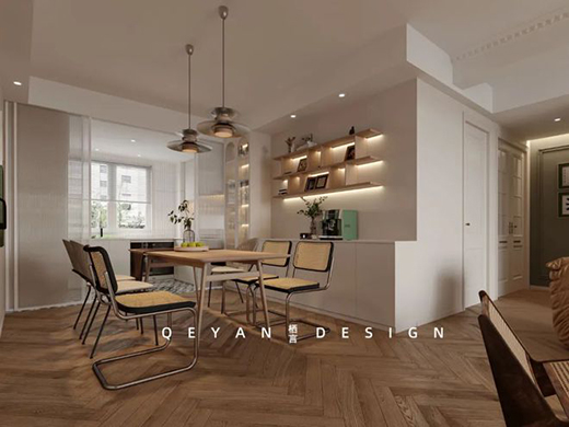 ?、僖院唵味皇з|感的空間設計,給人帶來一種靜謐舒適的視覺享受,開放格柜,層板恰帶好處地以陳列擺設為主