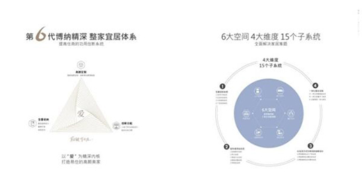 博納精深6.0系統整體性地涵蓋了一個“家”六大空間的使用需求:入戶、客廳、餐廳、陽臺、功能房、臥室,從四個維度梳理15個子系統,全面進行細節優化。