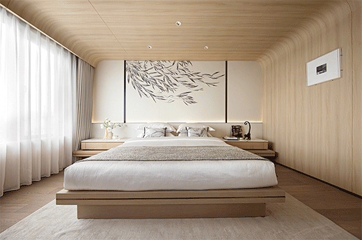 在空間設計與軟裝陳設上,通過富有層次的格局規劃與自然材質的優雅結合,營造出自由舒緩的氛圍。