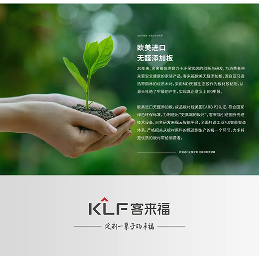 客來福家居作為國民品牌,從中國家庭需求出發(fā),一直潛心研究更環(huán)保的家居材料。客來福在產(chǎn)品的環(huán)保賽道上一直深耕,相繼推出了歐美無醛添加板、福芯板等健康產(chǎn)品。