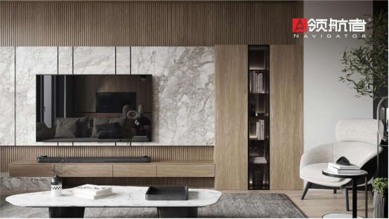 有人說(shuō)電視柜是客廳的靈魂,一個(gè)好的電視柜,不僅要求美觀還要實(shí)用。雖然現(xiàn)在年輕人很少看電視,對(duì)電視的需求度越來(lái)越弱,但是電視始終在家有一席之地。在電視柜的設(shè)計(jì)上,領(lǐng)航者以簡(jiǎn)潔大方為靈感,通過(guò)立體線條拉伸空間,呈現(xiàn)出高級(jí)又開闊的氛圍。搭配簡(jiǎn)潔優(yōu)雅的元素,打造出寧?kù)o高雅的格調(diào),一柜到頂?shù)闹梦锟臻g,不僅使各類擺件有序擺放,更讓整個(gè)空間保持了整潔的美感。