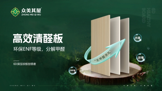在眾美其屋的設計理念中,環保與藝術并非對立,而是相輔相成。品牌全面升級基材,嚴選6D深壓紋飾凈醛板材,確保生活空間達到國際領先的ENF級環保標準。6D深壓紋技術通過高科技手段模擬自然界的紋理變化,使得每一塊板材都獨一無二,仿佛是大自然親手雕琢的藝術品,為家居空間增添了無限生機與活力。