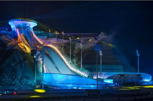 據悉,國家跳臺滑雪中心主要由頂峰俱樂部、競賽區及看臺組成,主體建筑的設計靈感來自于中國傳統吉祥物——“如意”。在照明設計理念上,充分結合建筑的特點,運用“舞動的跳臺,激情的飛躍”的表達手法,以“優化、強化、精化、細化”為指導原則,加強“如意”造型的效果表現,打造出“塑形象、顯細節、成系統”的整體夜間效果,完美地詮釋出雪如意“純潔冰雪·激情約會”的內涵。
