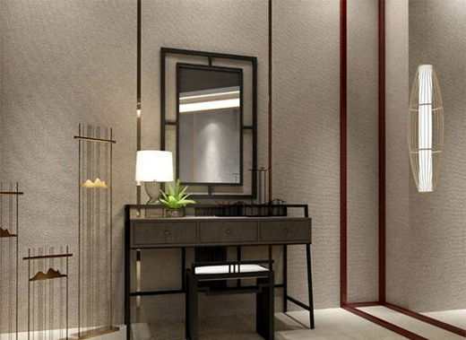 那么對于梳妝臺的擺放,就需要更多的思考,可以去掉配套梳妝凳,保留鏡子和梳妝臺,放在門廊區域,起到一個出門整理儀表的作用(注意梳妝臺臺面不能太寬)。
