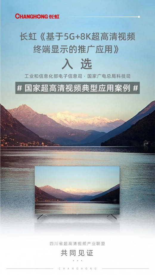近日四川省超高清視頻產業聯盟推選的《基于5G+8K超高清視頻終端顯示的推廣應用》(申報單位:四川長虹電器股份有限公司)入選工業和信息化部電子信息司、國家廣播電視總局科技司發布的《關于對擬入選超高清視頻典型應用案例名單進行公示的通知》。