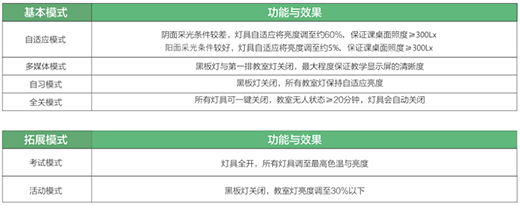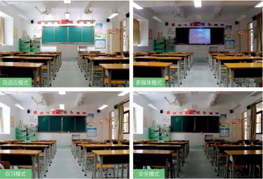 智能系統擁有全開模式、多媒體教學模式、自習模式、全關模式、智能消殺模式等多種模式,可根據不同教學場景需要切換到對應的照明模式,提高教學管理的質量。