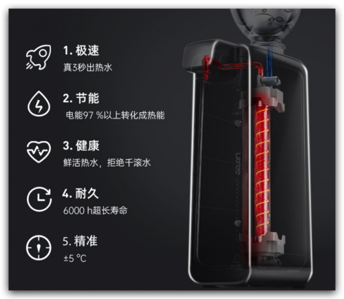 為了能為帶來更便捷的飲水體驗,立升mini即熱機支持3秒速熱功能,可輕松實現熱水無等待,日常飲用無需等待,鮮活熱水即用即取。6000h超長使用時間,讓你無需擔心壽命問題,這幾點與傳統電熱水壺相比,實在方便太多了。