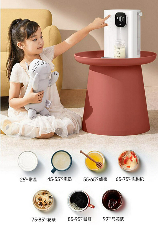 集米T2即熱飲水機對控溫進行了升級,在延續了上一代產品的常溫25℃、泡奶45℃、泡茶75℃和開水99℃四控溫控外,還新加入了每1℃可調模式,定制水溫更加簡單,且3秒即出熱水,無需焦急等待,讓飲水也變得智能化。