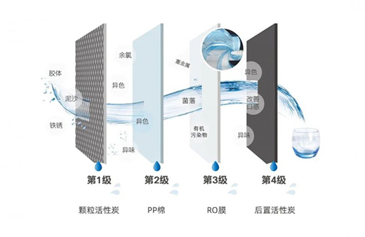 淡雅的外殼內深藏四“芯”,碳棒+PP棉+RO反滲透+小T,去除水中可能存在的,大腸桿菌、砷、鎘、六價鉻等有害物質,給你和家人無微不至的保護。