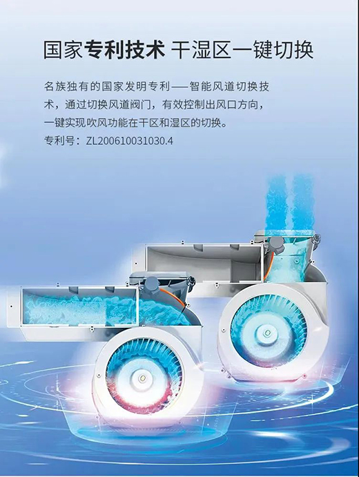 名族浴霸J6515,采用智能風道切換技術(shù),干區(qū)濕區(qū)一鍵切換,讓沐浴與出浴同樣舒適清涼,再也不用擔心洗完澡一身汗了~
