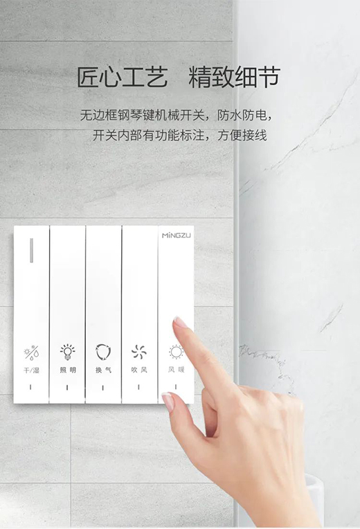 名族浴霸開啟換氣,帶走浴室異味,換來清新空氣,讓你如沐自然。