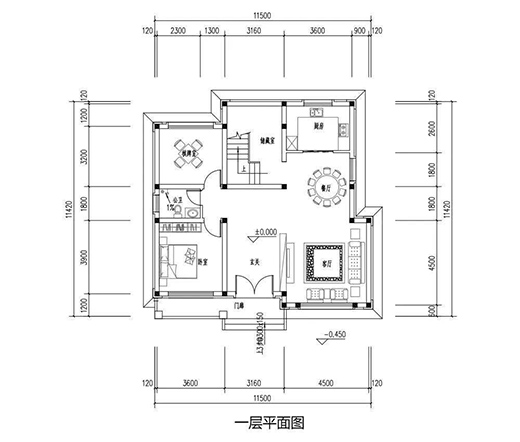 一層主要作為日常活動(dòng)區(qū)域,室內(nèi)布局合理清晰,進(jìn)門就是玄關(guān)、客廳和餐廳,顯得十分寬敞,一層只設(shè)置了一個(gè)臥室,可以保證其它功能區(qū)的面積,使得日常家居生活便捷舒適。
