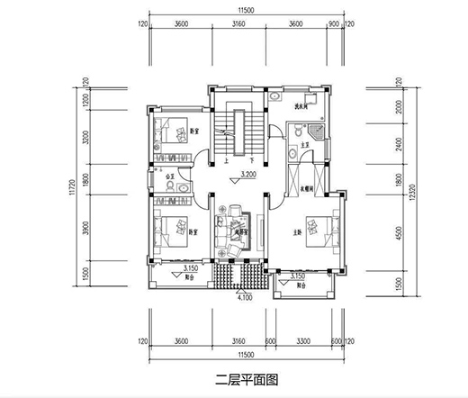 二層以居住為主,設(shè)3間臥室和起居室,其中一間帶衣帽間、獨(dú)立衛(wèi)生間和陽臺(tái),可做主臥套房使用。