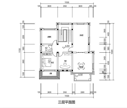 三層設(shè)有一間臥室、書房、雜物室、活動(dòng)室和陽光房,臥室可作為客房區(qū)域,有客人來拜訪需要過夜的額也有地方住。陽光房不僅是晾曬衣被的好場地,仔細(xì)裝扮一下作為休閑花園也十分漂亮、