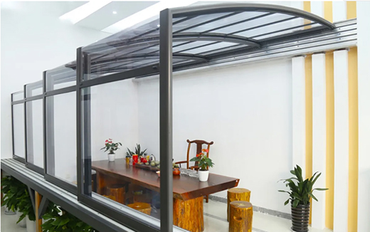 而新型移動(dòng)陽光房選擇的材料則沒有這方面問題,鋁合金骨架加聚碳酸脂板可定制范圍很大,平頂、人字頂、弧形頂?shù)榷喾N造型都能滿足。