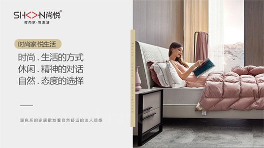 尚悅家居,時尚家·悅生活;尚悅軟床,用科學合理的舒睡知識和美學的設計理念,給您帶來不一樣的睡眠體驗。