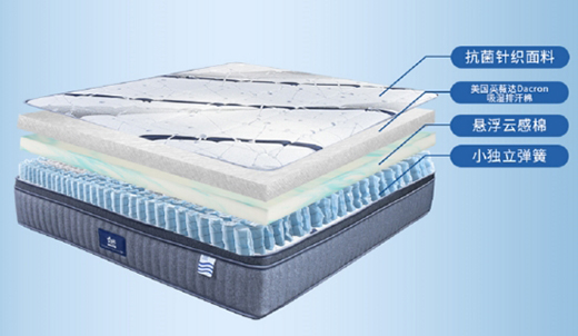 為了讓睡眠更加舒適,50°家床墊還采用了懸浮云感棉材料和抗菌防螨針織面料。其內部形成了一個自由循環的微氣候環境,具有極強的透氣性能,能有效去除潮濕。表面親膚柔軟,具有抗菌性能,從內到外打造出一個健康的睡眠環境。