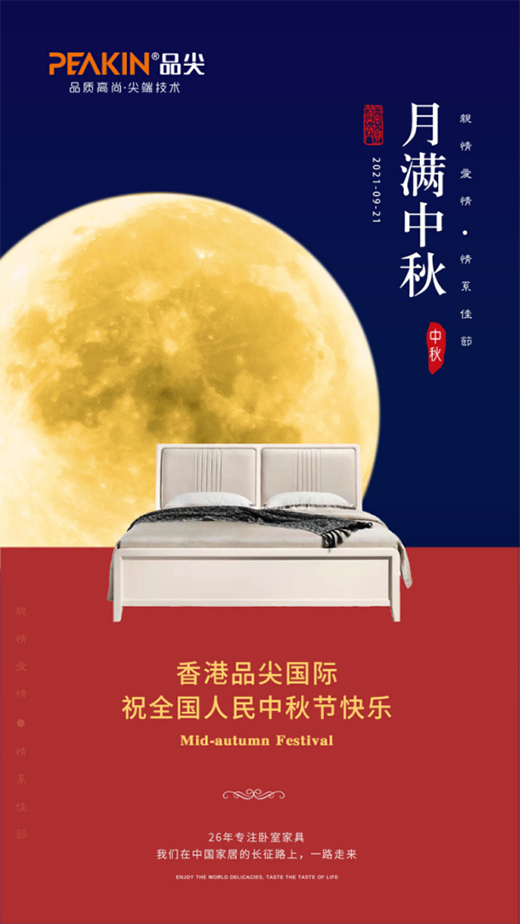 “但愿人長(zhǎng)久,千里共嬋娟”,品尖床墊予你與家人在這花好月圓夜一夜好眠,值此佳節(jié),品尖家具祝大家中秋快樂(lè),闔家歡樂(lè),萬(wàn)事順意,好夢(mèng)常圓!