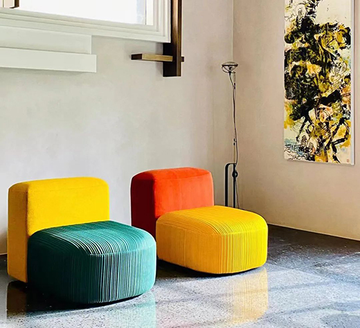 能為消費者帶來安全舒適感的設(shè)計,如今也成了軟體家居的趨勢之一?;⌒芜\用的多樣化,讓家具設(shè)計更顯圓潤而溫情,配以像羊毛卷這樣,手感飽滿,自然細膩的面料,共同帶來治愈人心的力量。