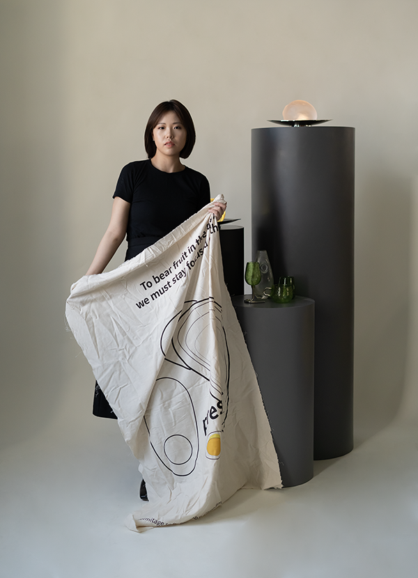 關于"檸檬"系列的設計靈感,逯童琦說:”檸檬燈的創作過程,是一個去重新尋找和大自然鏈接的過程。當時,正是疫情爆發后的隔離時期,人們面對著不確定、以及突如其來的生活環境變化,焦慮擔憂的情緒充斥著原本繁忙朝氣的城市 生活。我坐在后院,思考著、擔憂著自己的計劃和工作,突然被一聲“咚”打破了思緒,回過頭看到一個檸檬果從樹上掉落向我滾來。柔軟的果肉、不規則的檸檬果子和土地柔軟的落地接觸,頓時給我帶來了靈感。”