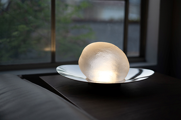 設計師在檸檬燈的材料運用上頗有心思,充分體現她通過設計傳達的生活情感。她設計的金屬燈座輕盈而不規則,褪去了對于金屬工業感的傳統理解,表面的鏡面處理更是將環境的色彩以映射的形式融進了產品,讓這一耐臟持久的環保金屬材質以柔軟自然的姿態呈現在我們眼前。燈罩則是由蠟膜玻璃所制成,表面的不規則紋理,像極了水果果肉肌理;半透明的處理、配合著臺燈觸碰緩緩亮起的開關,給人一種柔軟和不緊不慢的感覺。