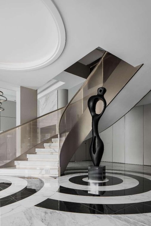 本案為別墅改造項目,在與業主一家深度溝通后,設計師決定遵循便利、敞亮、私密的布局,選取華麗+古典的元素,結合極簡的手法,呈現一個既輕奢現代又帶有古典優雅的光影美居。