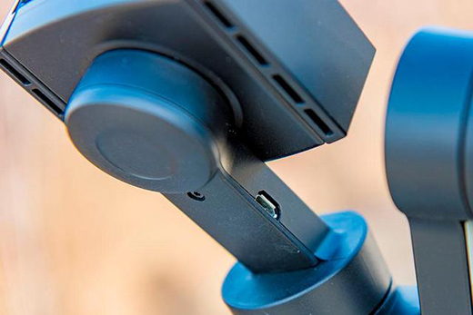 在夾持手機的底部配有MicroUSB接口,位置隱藏更靠近夾持手機附近,方便連接手機使用,雖然很多旗艦級手機都取消了3.5mm接口,日常連接用藍牙就可以完成,但是如果追求有線連接的迅速還是可以使用有線連接。連接之后使用手機自帶的拍照APP時也可以正常使用穩定器的各項獨特功能,但是也不必糾結魔爪APP的功能限制,使用手機自帶的拍照APP就能夠完成防抖錄制。