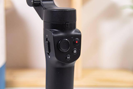 功能鍵的作用除了一鍵切換常用的工作模式外,雙擊可以自由切換橫拍/豎拍,三擊進入待機模式,五連擊初始化設備。扳機鍵按住是鎖定目標效果,移動時鏡頭會自動調整到拍攝主體的位置,而雙擊扳機鍵則能讓航向軸復位,回到開機狀態;三連擊切換前置后置攝像頭,習慣后拍攝會得心應手。