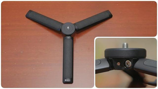 雖然三腳架與底座接觸面沒(méi)有橡膠墊,但這種“硬碰硬”的結(jié)果就是——連接后相當(dāng)牢固,沒(méi)有絲毫晃動(dòng)。當(dāng)然,你也可以貼上一塊黑膠帶,這樣不僅牢固,又能防止長(zhǎng)時(shí)間使用后產(chǎn)生磨損。