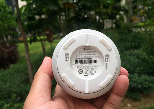 包裝背面信息相對豐富些,除了廠家信息外,還有360智能攝像機云臺5P觸聯2K版參數信息;最值得一提的是左上方有兩個二維碼,一個是360的公眾號,一個是360攝像頭智能控制APP,方便用戶掃描下載。