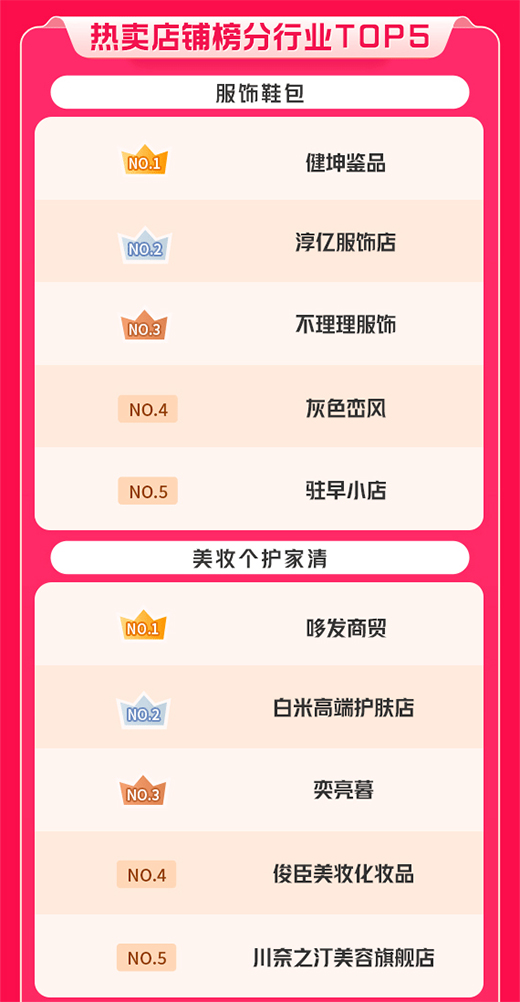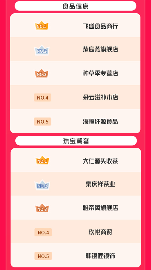 直播方面,在「好物直播間」等扶持下,多品牌商家迎來GMV上漲。服裝行業、食品健康、珠寶潮奢等不同品類商家共同迎來窗口增長期。