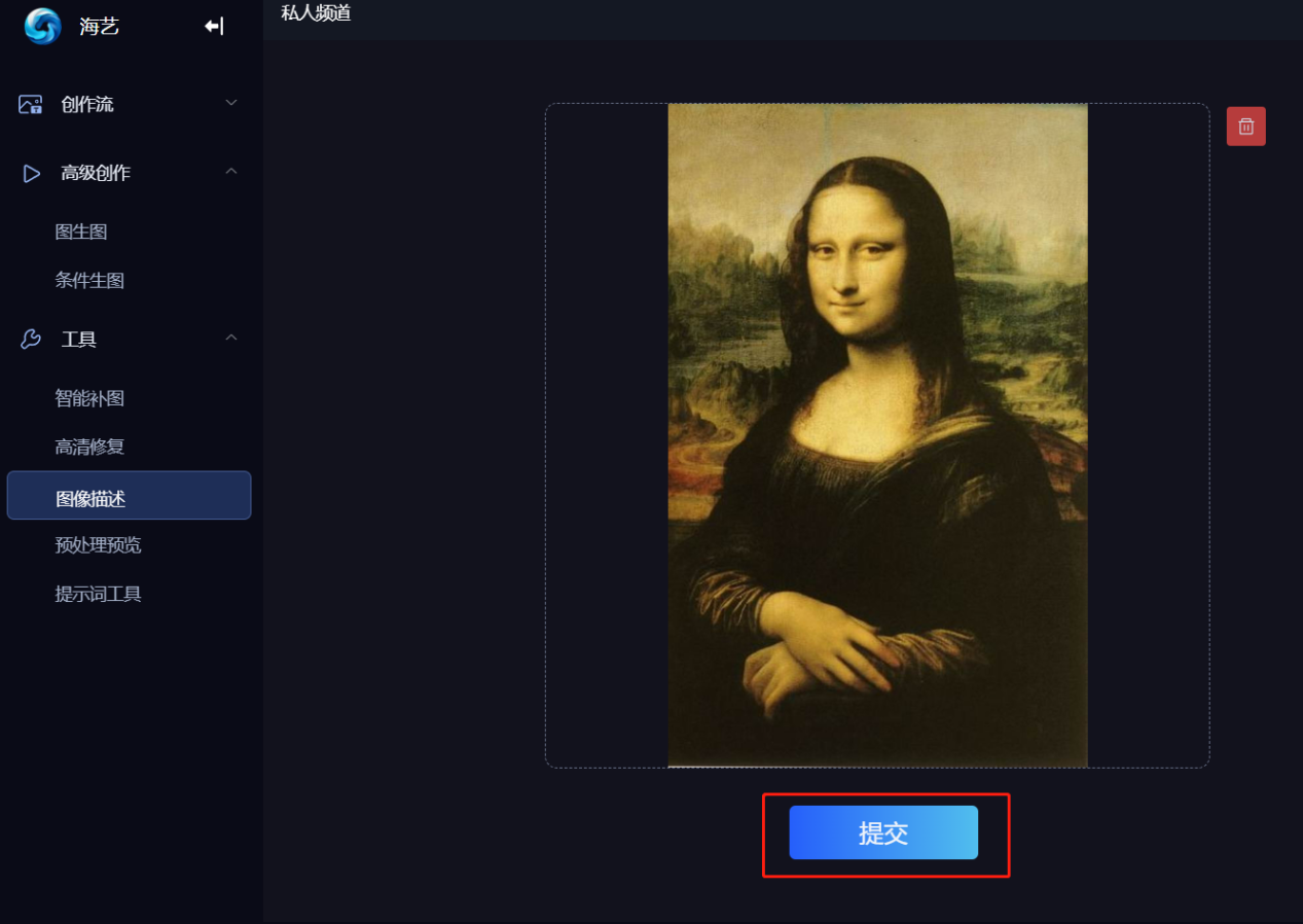 與傳統的繪畫軟件相比,海藝AI特色鮮明,圖像智能描述與面部重繪功能非常驚艷!用戶打開創作界面,導入圖片就可以提取關鍵詞,支持涂抹并局部重新繪制,引領藝術創作的新風潮,高清修復效果顯著。