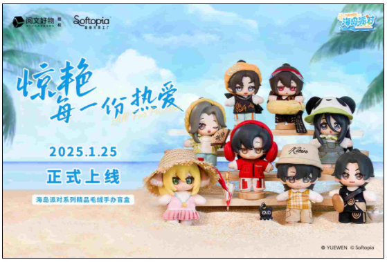 精品毛絨潮玩品牌「超級(jí)元?dú)夤S」與閱文集團(tuán)旗下衍生品官方廠牌「閱文好物」官宣聯(lián)動(dòng),攜手閱文旗下八大明星IP推出《海島派對(duì)系列精品毛絨手辦盲盒》,于2025年1月25日驚艷亮相在新加坡舉辦的Yuewen Wonderland嘉年華,并在上海、杭州、成都開啟國(guó)內(nèi)早鳥發(fā)售。