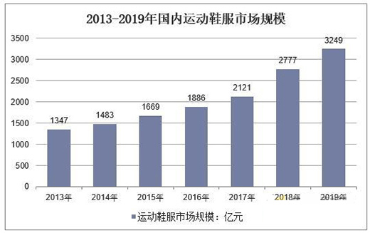 阿迪達斯、耐克等國際運行品牌遭遇重創的同時,國內疫情已過高峰期,開始得到控制,對于國產運動品牌既是機遇也是挑戰。數據顯示,2019年國內運動鞋服市場規模達3249億元,同比增長17%。