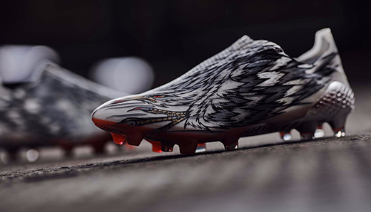 今夏問世的阿迪達斯全新戰靴X GHOSTED鞋面上的勝利三條紋設計靈感便是來自于游隼這一世界上飛行速度最快的鳥類,這與其速度型戰靴的定位相符。現在,全新X GHOSTED+ “Peregrine Falcon”限量足球鞋將游隼的形象具體化,以充滿激進大膽風格鞋面圖案為這款戰靴帶來令人印象深刻的外觀,并且讓人聯想起2014年阿迪達斯與日本著名時尚設計大師山本耀司聯手打造的那雙F50 adizero Y-3足球鞋。