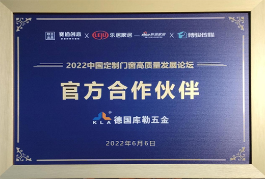 會后,德國庫勒五金被授予了《2022中國定制門窗高質(zhì)量發(fā)展論壇》官方合作伙伴牌匾,以嘉其對本次論壇活動的大力支持。