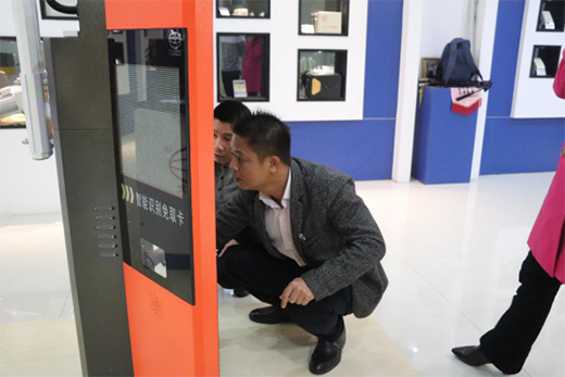 此過程中,胡總和梁總一行人對巨光新推出來的輪式開門機,車輛識別系統(tǒng)等產(chǎn)品頗為興趣,由研發(fā)部金工為經(jīng)銷商朋友細心講解。