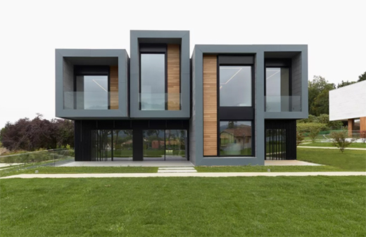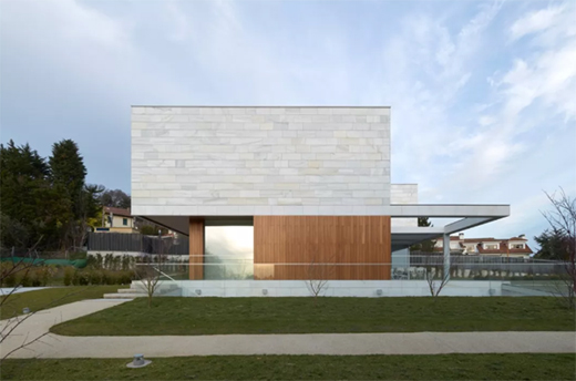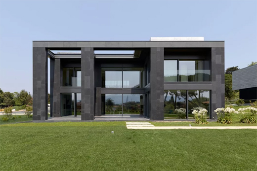 連接建筑群的地下層是新建房屋體量的基礎,非常簡單,沒有花哨的設計元素,意圖尋找一種永恒的意象。三棟住宅使用相同的天然石材作為建筑的外立面,但它們擁有不同的顏色——從黑色到灰色再到白色——這樣便獲得了一種復雜的統一性,但同時又為每棟建筑物賦予了一些個性。