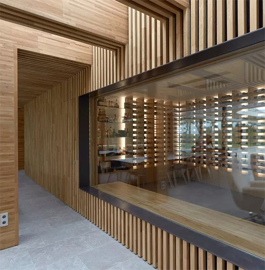 三個建筑體量相對緊鄰,同樣是出于可持續性發展的考慮,在南面采用玻璃幕墻以最大限度地獲得陽光和自然光線,而北立面則以不透光的墻體為主。室內裝有地熱系統為供暖提供能量。