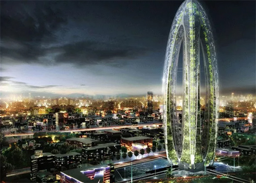 這個未來風格的塔式大廈包含著數千棵樹木,通過“吸收”有毒煙霧可以有效解決城市污染問題。它被命名為“仿生拱形摩天大樓”,旨在使用“生物墻”來吸收有害煙霧氣體,它能夠吸收這些有害氣體,并轉化成為氧氣。