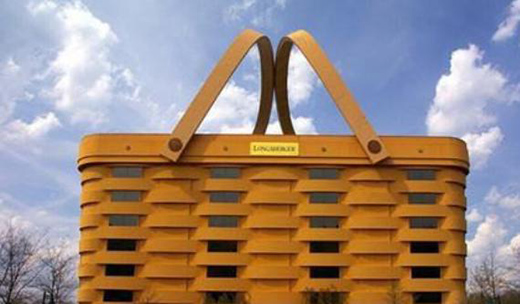 今天,我將向您介紹其中一個奇怪的建筑,它被稱為籃子建筑,它位于美國俄亥俄州紐瓦克市,整個建筑被做成籃子的形狀,遠遠看去,我覺得就像是在一個童話里的巨人國度,但這棟樓是美國某著名籃筐制造商的總部大樓。