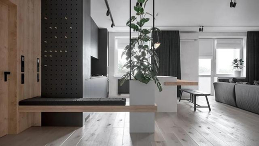 整個空間采用了高級灰為主色調,讓整個空間的質感有所上升,同時木質材質的加入又讓整個空間具有了生活氣息。